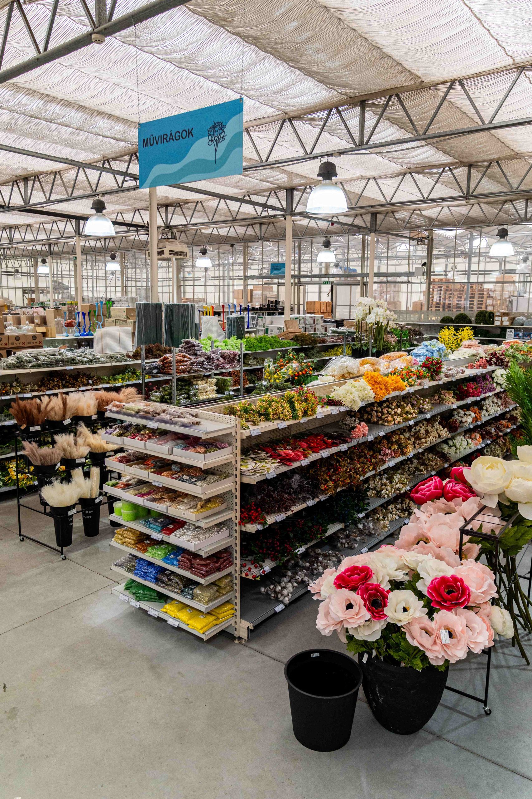 Minden, ami a virágkötészethez kell, sőt még annál is több: Eszközök, kellékek, dekorációs tárgyak, berendezési tárgyak, kisbútorok minőségi, egyedi választéka, 1700 négyzetméteren.